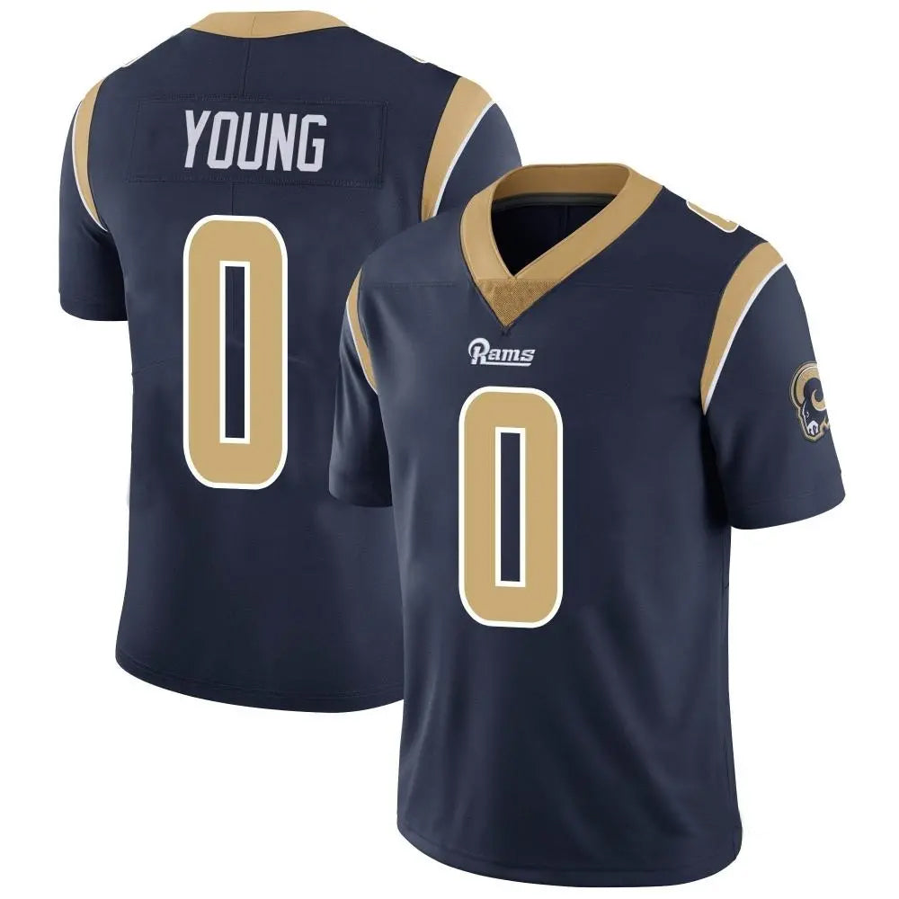 Celebrate your Rams spirit with the #0 Byron Young Navy Vapor Limited Football Jersey. Combining a sleek navy design with lasting comfort and durability, this jersey is perfect for game days and everyday wear alike. Show your support for Byron Young while making a bold statement as a dedicated fan with this exclusive limited edition jersey.